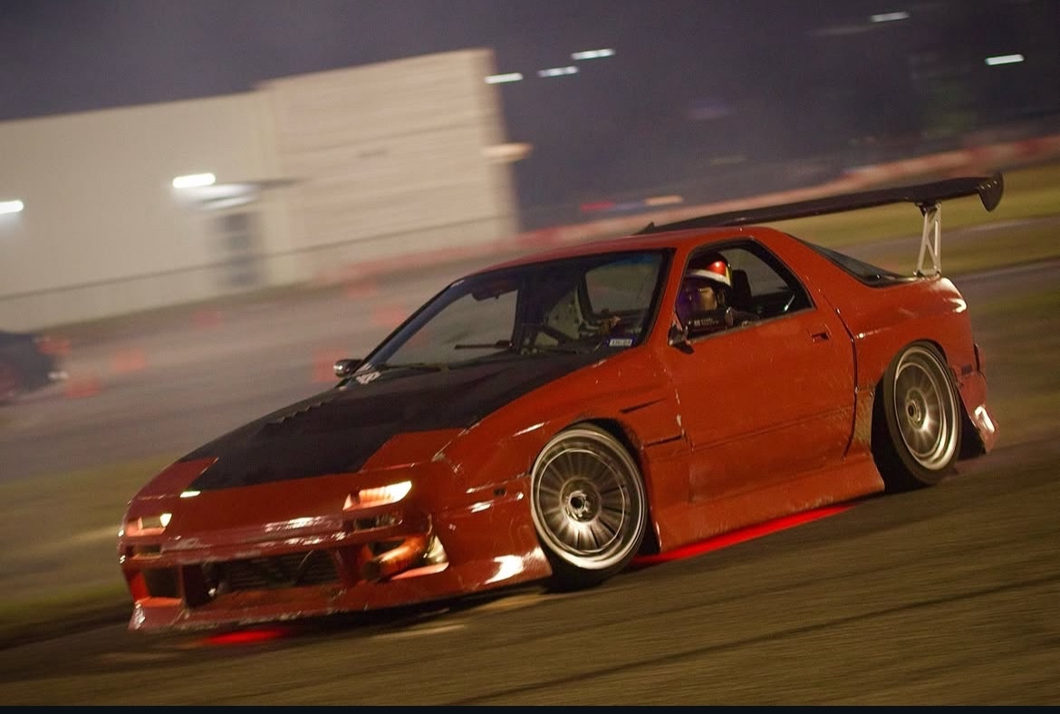 His RX7 although initially divisive, has become a household name in the houston drifting scene, screaming with a mysterious sound only to suprise all of those in the pits once the hood comes up!